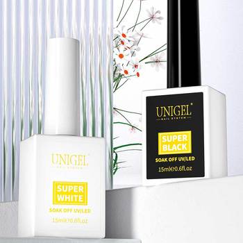 جل أظافر سريع الجفاف للبيع بالجملة من Unigel ميزة نقع الألوان السوداء والبيضاء الفائقة